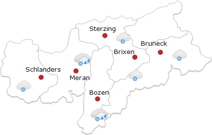Im Tagesverlauf beginnt es allmählich wieder leicht zu schneien, vor allem in den Ultner Bergen und Dolomiten. Gegen Abend breitet sich der Schneefall auf den Großteil Südtirols aus, in der Nacht schneit es am meisten in den Sextner Dolomiten.
